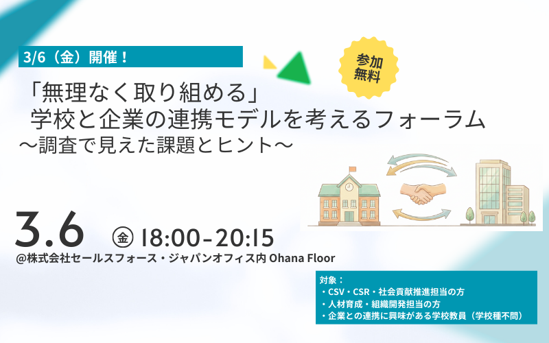 3/6(金)開催!「無理なく取り組める」学校と企業の連携モデルを考えるフォーラム