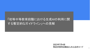 プログラミング教育にはさまざまな形がありますが、「コード」を書き、読み取る力を身に付けることが、教養を越えた技術技能となり、我が国を支える力となります。「みんなのコード」の名の通り、あえてコードを書くことの大切さを教える事にも果敢に挑戦し、すぐれたテクノロジーを惜しみなく支援ツールに投入し続ける、貴法人の心意気に喝采です。